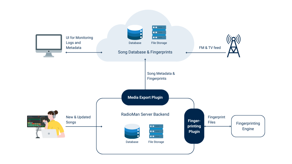 Together, the Fingerprint and Media Export plugins create a smooth connection between RadioMan and the fingerprinting and identification infrastructure. This means:
